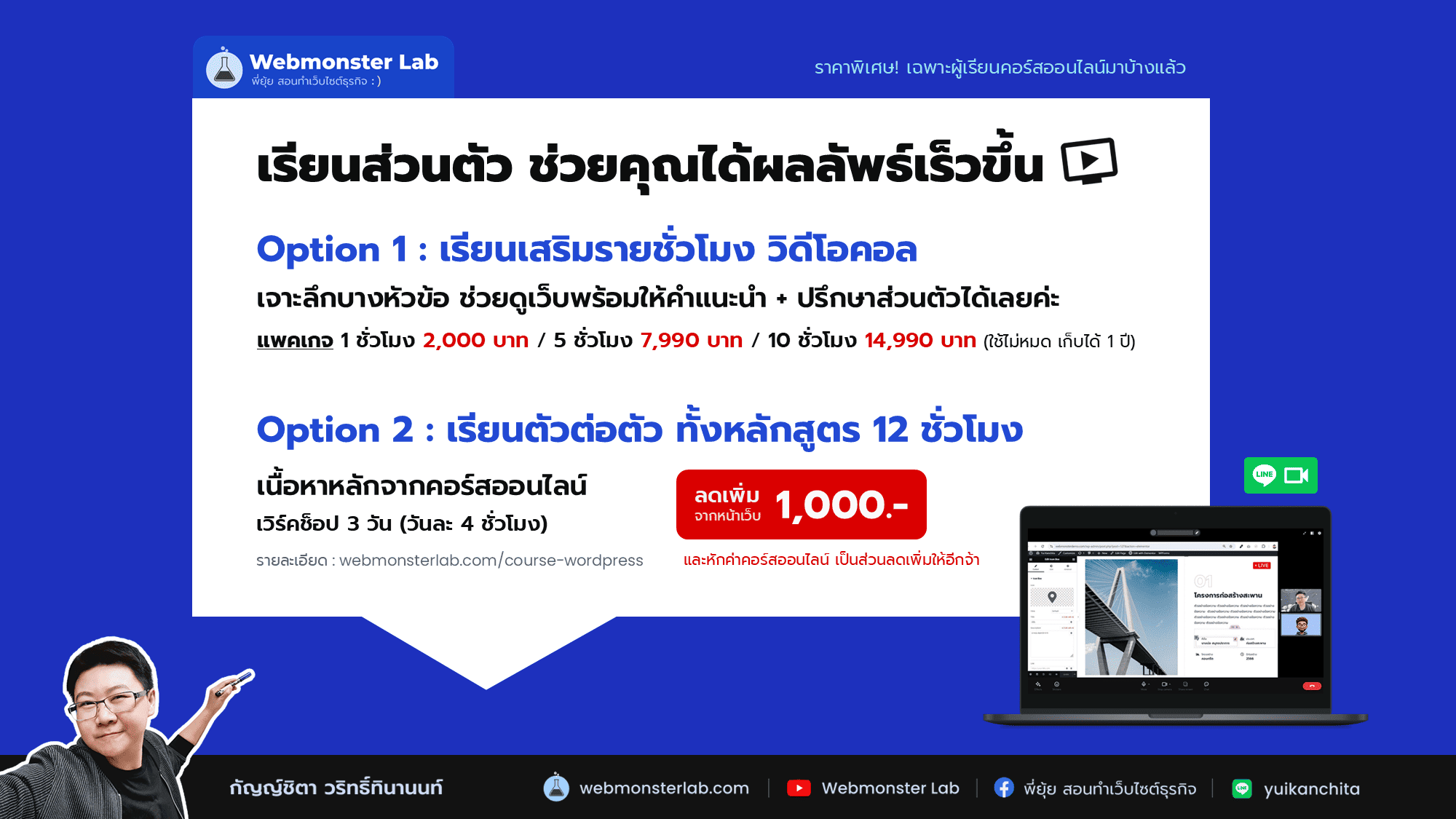 อ.ยุ้ย กัญญ์ชิตา วริทธิ์ทินานนท์ Line ID : yuikanchita Inbox : m.me/webmonsterlab